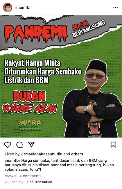 The leader of the FBR, Imam Luthfi Hakim, sounded a more cautionary tone, via Instagram, trying to put the controversy into perspective.