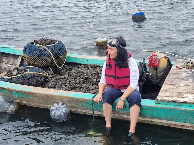 The artist, Indah Arsyad, carrying out field work for her current project / Courtesy of the artist